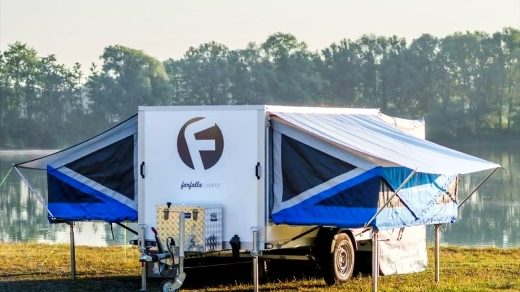 Men neme een standaard gesloten aanhangwagen en gaat vervolgens aan de slag om daar een kampeermobiel van te maken. Zie daar de Farfalla Flip en Farfalla Flap.