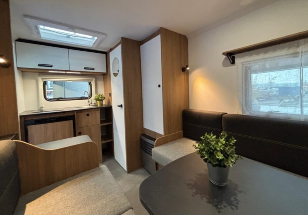 Caravelair staat sowieso bekend om zijn voordelige, ruime en tegelijkertijd lichtgewicht caravans. Met de Alba 325 doen ze die reputatie meer dan eer aan. Deze caravan heeft een leeggewicht van slechts 800 kilogram en mag maximaal tot 1.300 kilogram worden beladen. Binnenin is er plek voor 2 om te slapen in naar keuze een dwarsbed of 2 enkele bedden, mét lattenbodems. De grote zitgroep kun je namelijk makkelijk -en flexibel- transformeren. Het frisse en moderne interieur is uitgevoerd in de nieuwe kleurstelling “Perriand”.