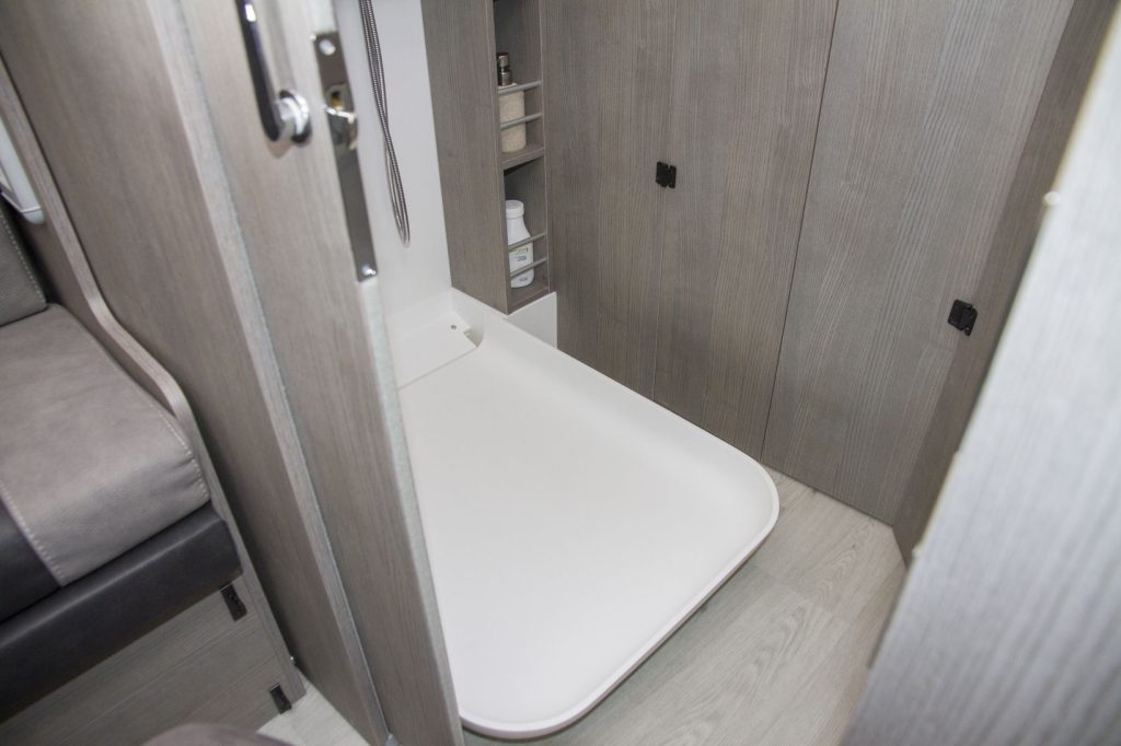 Bij Furgok benadrukken ze dat grondig over Dynamic Space hebben nagedacht: “Door de talloze situaties die zich in slechts een paar vierkante meter kunnen afspelen te observeren en ons ervan bewust te worden, begrepen we hoe belangrijk het is om de leefruimte in een oogwenk aan elke specifieke situatie aan te passen.” In de uitvoering van dat concept moet je denken aan een inklapbaar fornuis, een uitschuifbare eettafel, een deur tussen leef- en slaapgedeelte, vierpersoons stabelbedden met elektrische bediening én: een buitendouche.