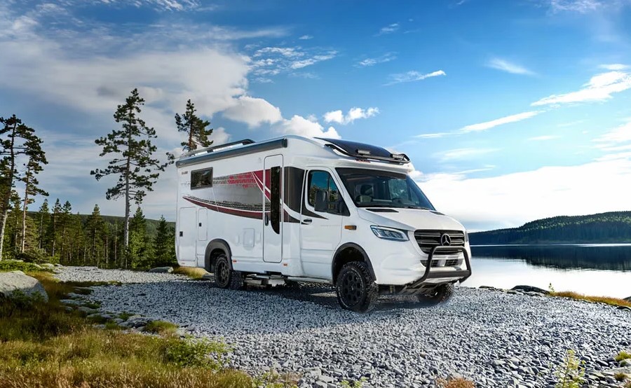 Het bouwen van een vierwielaangedreven halfintegraal-camper brengt nogal wat uitdagingen met zich mee voor een fabrikant. Voor een ‘normale’ uitvoering wordt namelijk veelal gebruik gemaakt van alleen de standaard cabine van een autofabrikant, bijvoorbeeld de Fiat Ducato of Mercedes Sprinter. Bij de camperfabriek wordt dan eigenlijk alleen de voorkant daarvan aangeleverd, met daarin ook het motorblok en de versnellingsbak. En met voorwielaandrijving dus. De ‘achterkant’ bestaat uit een frame (bijvoorbeeld van AL-KO) en de achteras en dat is aan de cabine geschroefd. De camperbouwer kan zo’n frame geheel naar wens samenstellen, bijvoorbeeld om er een lage instap en een dubbele bodem in te realiseren.